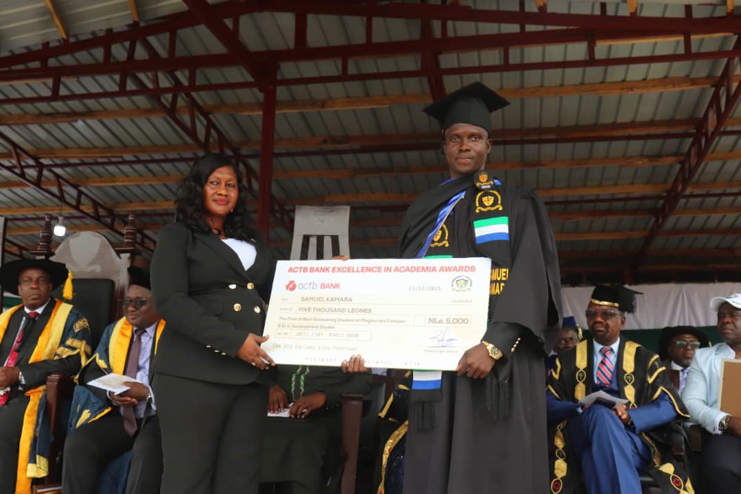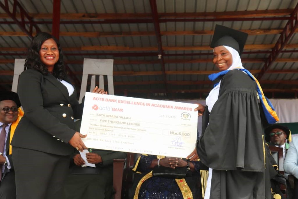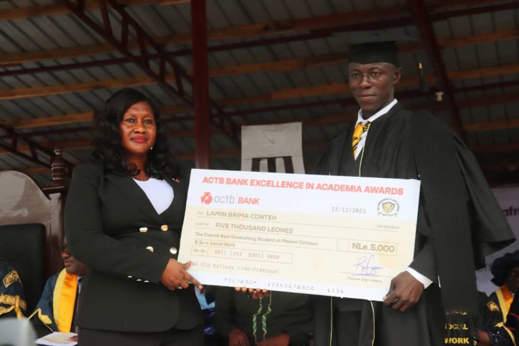 According to a news release from ACTB, it is the first financial institution in the country to introduce such a reward scheme at a university graduation, with EBK University as its pioneering beneficiary. Rockslyn Alwyn Findlay, the bank’s Marketing Manager, described the occasion as a defining moment for education in Sierra Leone, noting that ACTB is committed to recognizing excellence, rewarding hard work, and investing in the nation’s future leaders.
