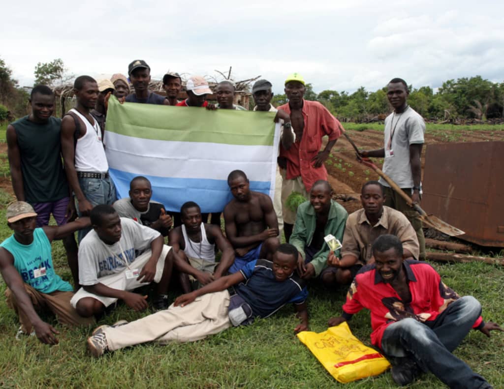 Youth in Mattru Jong participating in an African Youth Movement (AYM) funded agricultural activity. Image, AYM.
